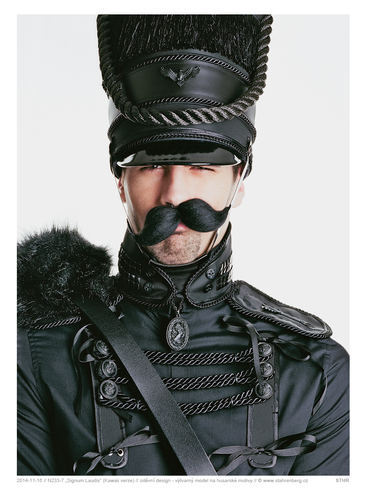 Výtvarný model na husarské motivy. Středoformátový fotoaparát Mamiya RB67 Pro SD, objektiv: Mamiya KL4.5/180L-A, materiál: Kodak. Negativ: N233-7, sken a digitální úprava. Dokončeno.